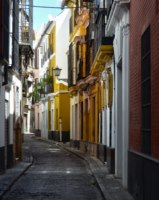 Una puerta abierta en una estrecha calle. Tras ella un patio de paredes blancas y macetas llenas de flores. Es aún muy de mañana y el suelo, recién regado, impregna el aire de gotas de agua. Huele a barro y a flores mojadas… allí podríamos quedarnos pacientes, sin prisas y más pronto que tarde el sonido que hoy traemos tomando forma de mujer, podría atravesar la vieja puerta de madera pintada en rojo sangre en esta estrecha calle del centro de Sevilla.