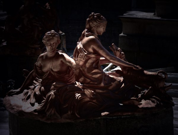 Es una de esas músicas que yo llamo mágicas y sería la música perfecta para hacer girar a estas figuras quizás ¿por qué no? del Mundo de las Hadas, en una imaginaria caja de música cuya tapa fuese el cielo. Inmóviles desde siempre, prisioneras en sus cuerpos de bronce y en su mundo de piedra, parecen estar esperando que a sus oídos llegue un sonido como el que hoy traemos. Sonido redondo que, no tengo la menor duda, las levantaría del suelo para en el aire hacerlas girar y mecerse siguiendo su ritmo, con la misma sutileza que el viento mece las flores cuando las acaricia…
