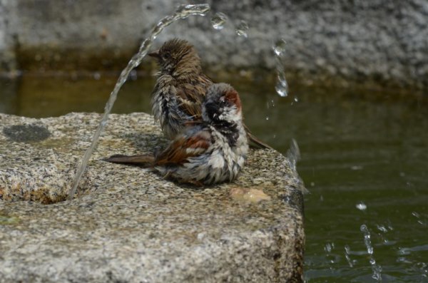 Esperas un buen rato a que la paloma llegue a la fuente. Te distraes un momento y de pronto ahí está, como tú querías, justo a ras del agua. A toda prisa disparas. Compruebas el resultado que resulta ser, a simple vista, que no has dado ni una. Te encojes de hombros suspirando mucho una o dos veces… pero algo te dice que la veas de nuevo, que esta vez mires la toma y… pues que les dejo el resultado de lo que podríamos llamar “un fallida toma agraciada”.