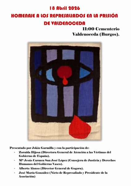 Este sábado, a partir de las 11 de la mañana, se celebrará el homenaje a los represaliados en la prisión de Valdenoceda. Entre las personas que intervendrán estará Zoraida Hijosa, Directora General de Atención a las Víctimas del Gobierno de España, Mª Jesús Carmen San José López, Consejera de Justicia y Derechos Humanos del Gobierno Vasco o Alberto Alonso, Director General de Gogora, el Instituto de la Memoria, la Convivencia y los Derechos Humanos. Por supuesto, no faltará José María González, presidente de la asociación y con el que hablamos el pasado martes 14 de abril. Un 14 de abril nació su abuelo en tierras manchegas. Otro 14 de abril, cosas del destino, murió en el penal de Valdenoceda. Aquí cuenta la situación actual en lo referente a la identificación y recuperación de algunos de los fallecidos en la prisión del valle y se emociona al volver a escuchar algún testimonio de otro homenaje.